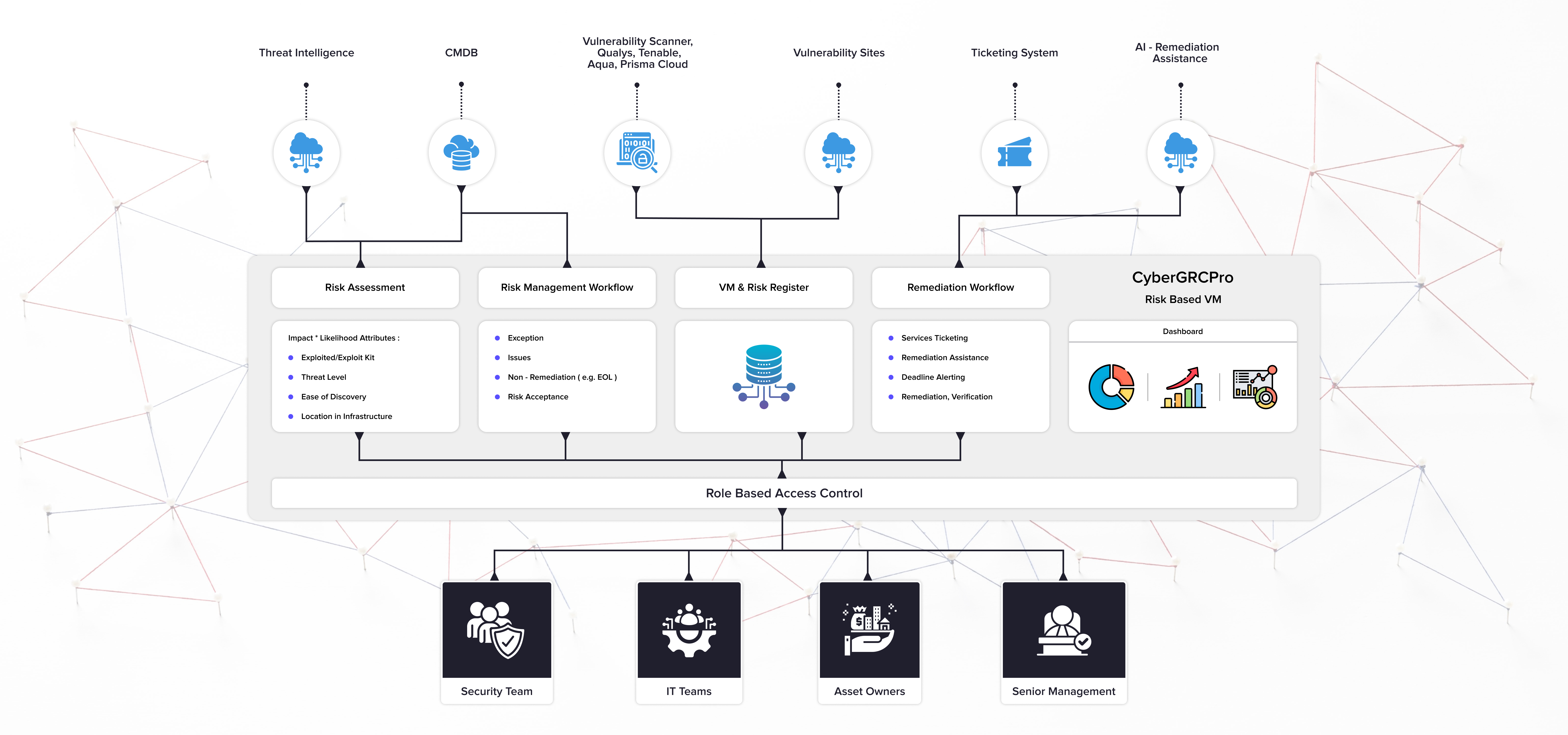 CA-RBVM is our flagship product which priotises vulnerability remedation through AI/ML on live threat intelligence on exploiation and faciliattes full end-to-end automation of triage and remediation workflows which captures reasons for delays in remedoation to give transparent dashboard reporting on VM status.